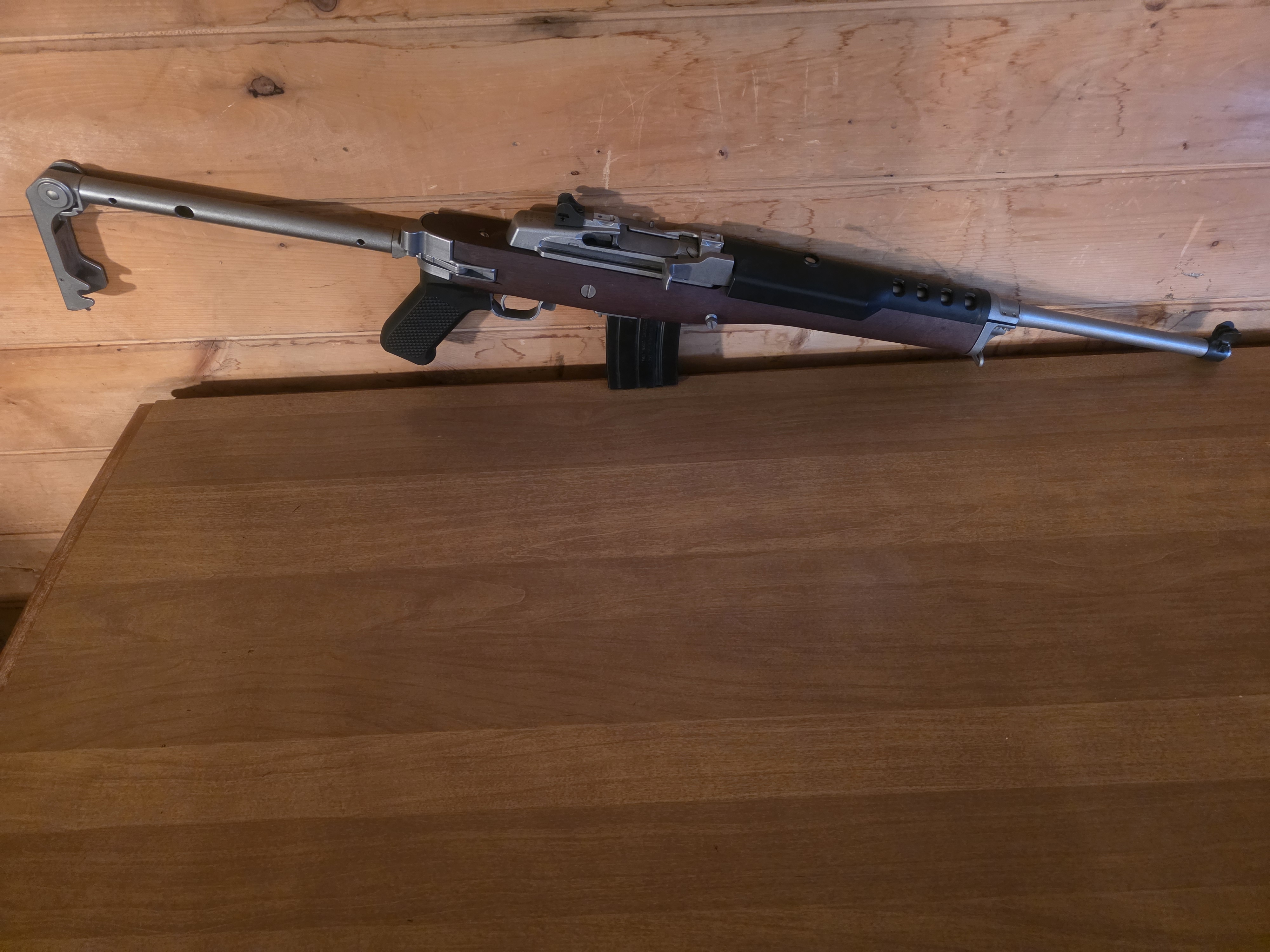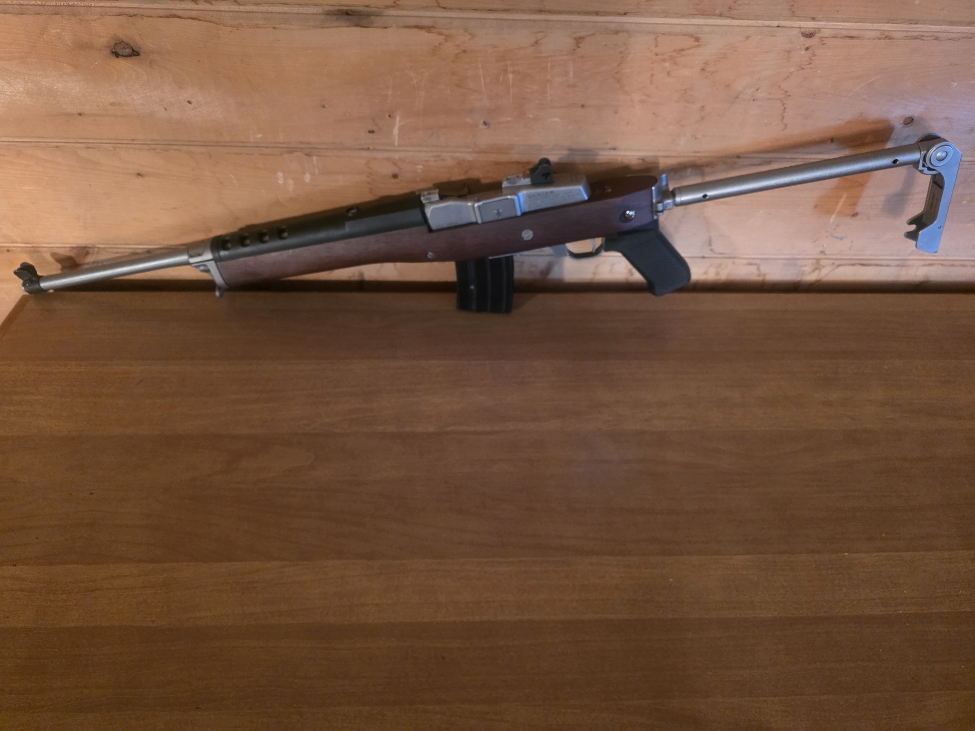 Ruger Mini 14 Ranch Folder. Great shape. Comes with One 20 round magazine, Two 10 round magazines. Also have the beautiful wood stock to go with it. 1200 Bucks