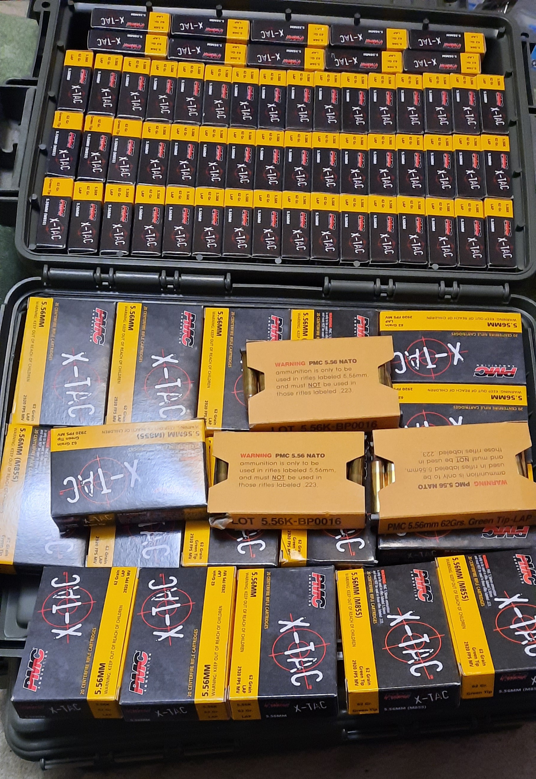 78 boxes (1560 rnds) of PMC X-TAC 62gr Green Tip-$600 I am leaving Alaska later this year and am unable to transport Green Tip ammo through Canada. Selling what I have left plus a couple others to keep total under the Canadian limit of 5000 rounds.