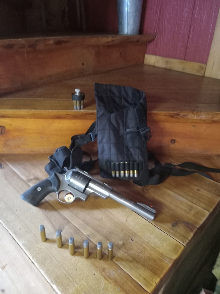 7 1/2" Barrell with speed loader, chest holster, and 39 bullets.