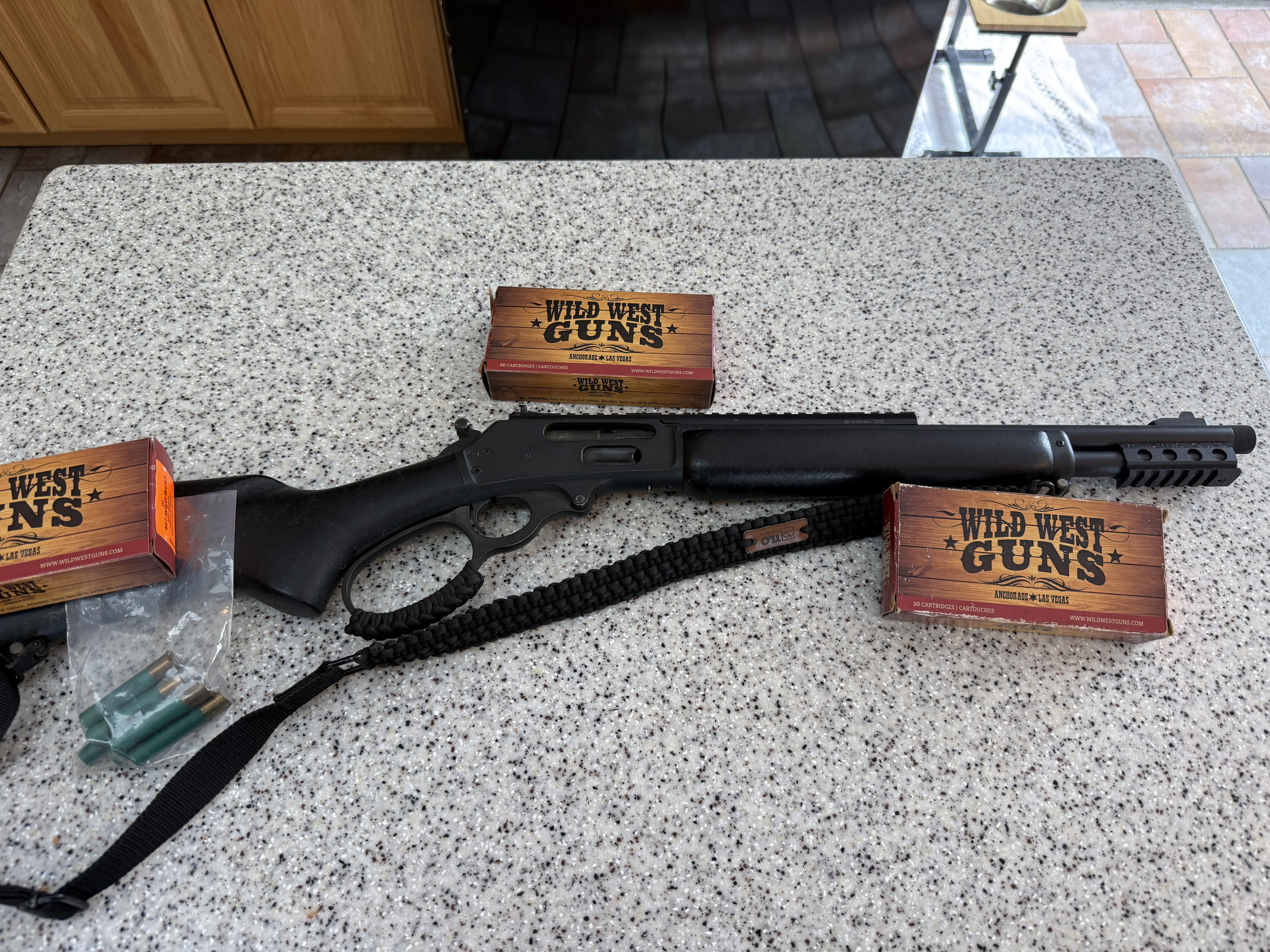 An original Marlin Dark Series, one of the last ones built before the Ruger takeover. Wild West Guns worked the rifle, added the follower, ejector, trigger, light laser mount and bored it for the WWG 457 and 410. Call for more details or to take a look. Comes with 2.5 boxes of 457 WWG, and a handful of 410 rounds.