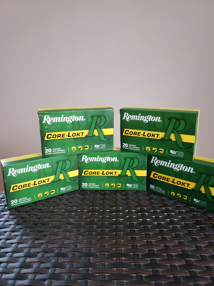 100 rounds (5 boxes) Remington 150 grain, 30-06, Core-Lokt, soft point ammunition. Factory new. Price is firm. Cash only. No trades. Price reflects a savings of $40.00 below current local and internet prices for this ammo. I am able to take phone calls from 11 am to 8 pm 7 days a week. Sold as a package deal only. Will not sell separately.