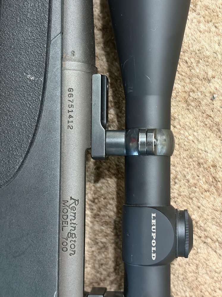 Remington Model 700 bolt-action rifle in .30-06 Springfield with mounted Leupold scope and synthetic stock. Good condition.