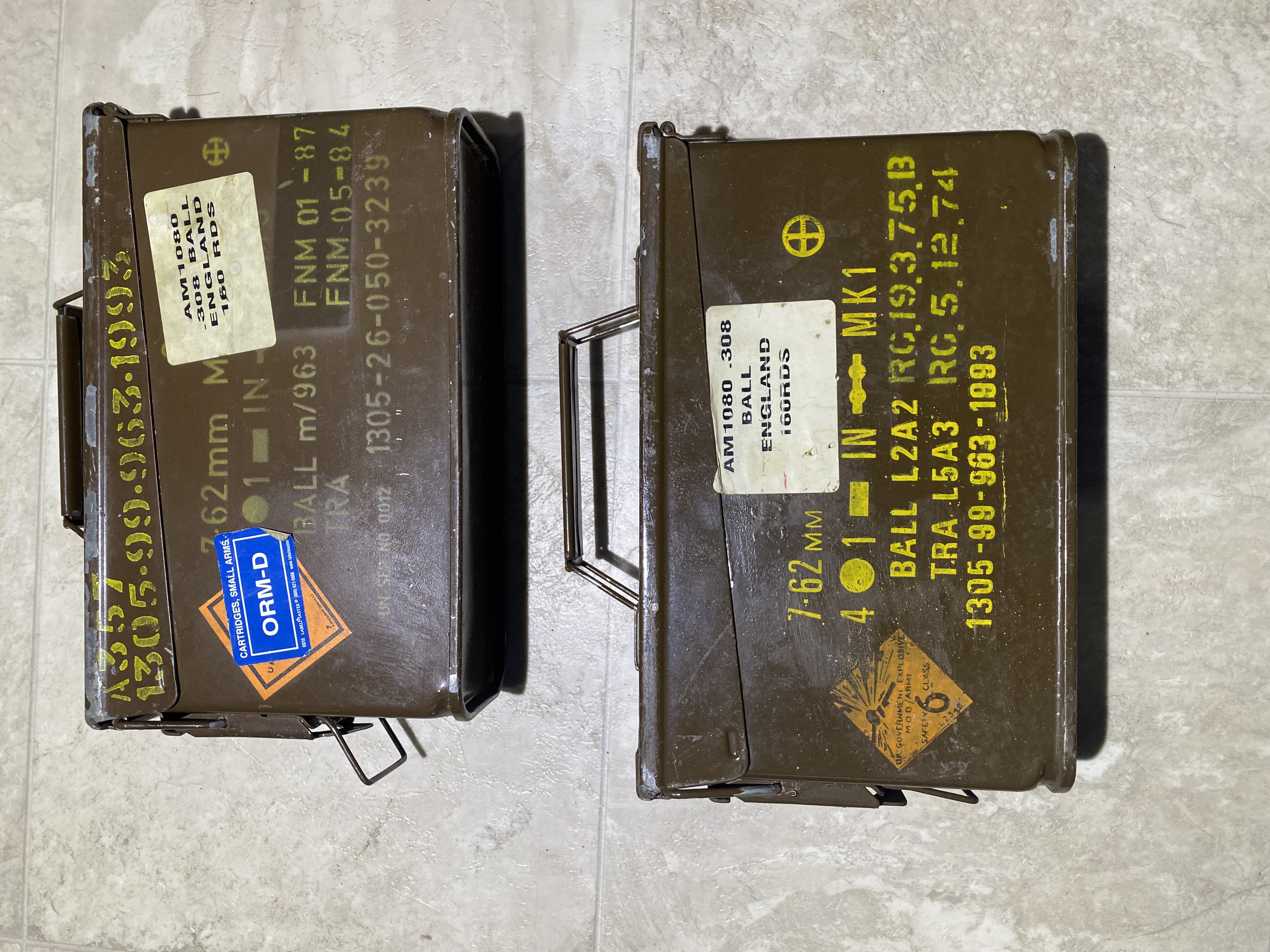 British Radway Green L2A2 7.62x51 Ammunition in ammo cans (personally counted and verified count of 250 rounds each) Origin. Produced at the Radway Green Arsenal in England for the British Military. Designation. Often found as L2A2 ball ammunition. which is considered highquality NATO spec ammo. Specifications. Commonly features a 150 grain FMJ bullet with a brass case. Known for having a stronger thicker case head to prevent separation when fired from L4 light machine guns. Price is per ammo can.
