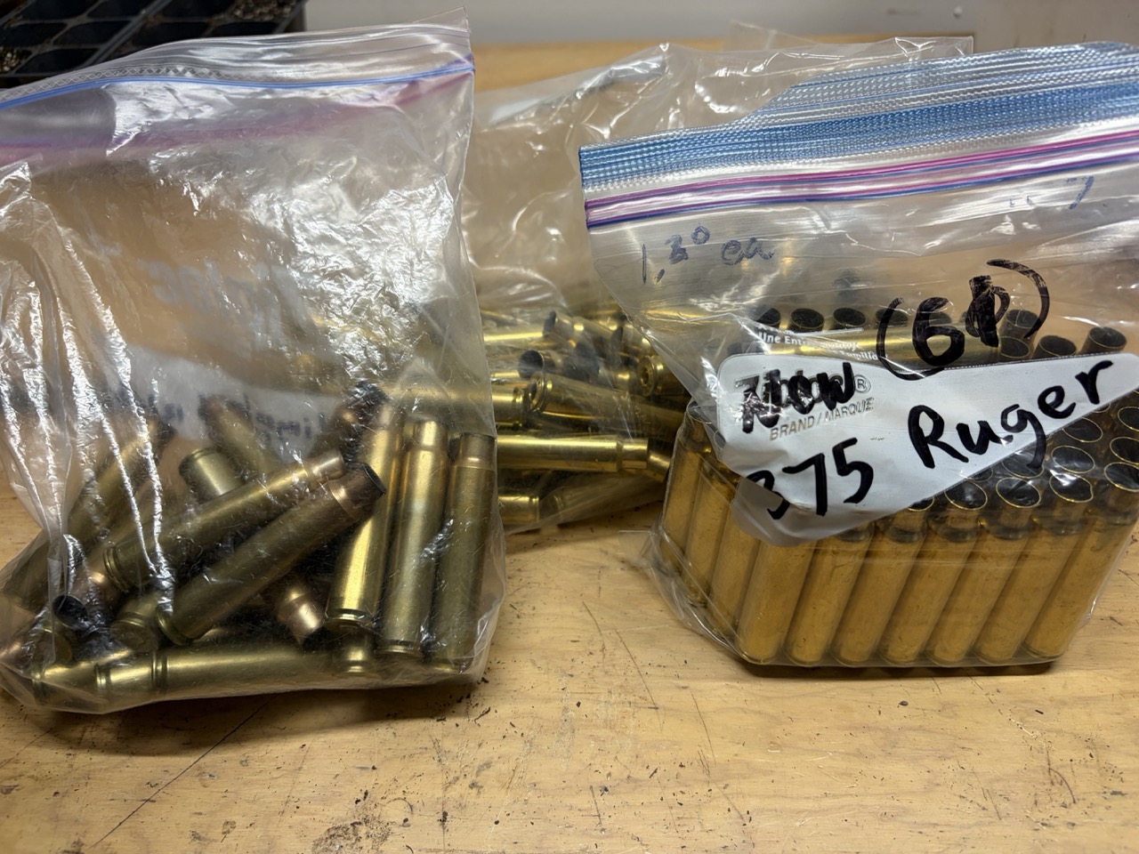 $120: 140 pieces of Hornady 375 Ruger Brass. (61 are new/never fired, the rest have been once fired).
