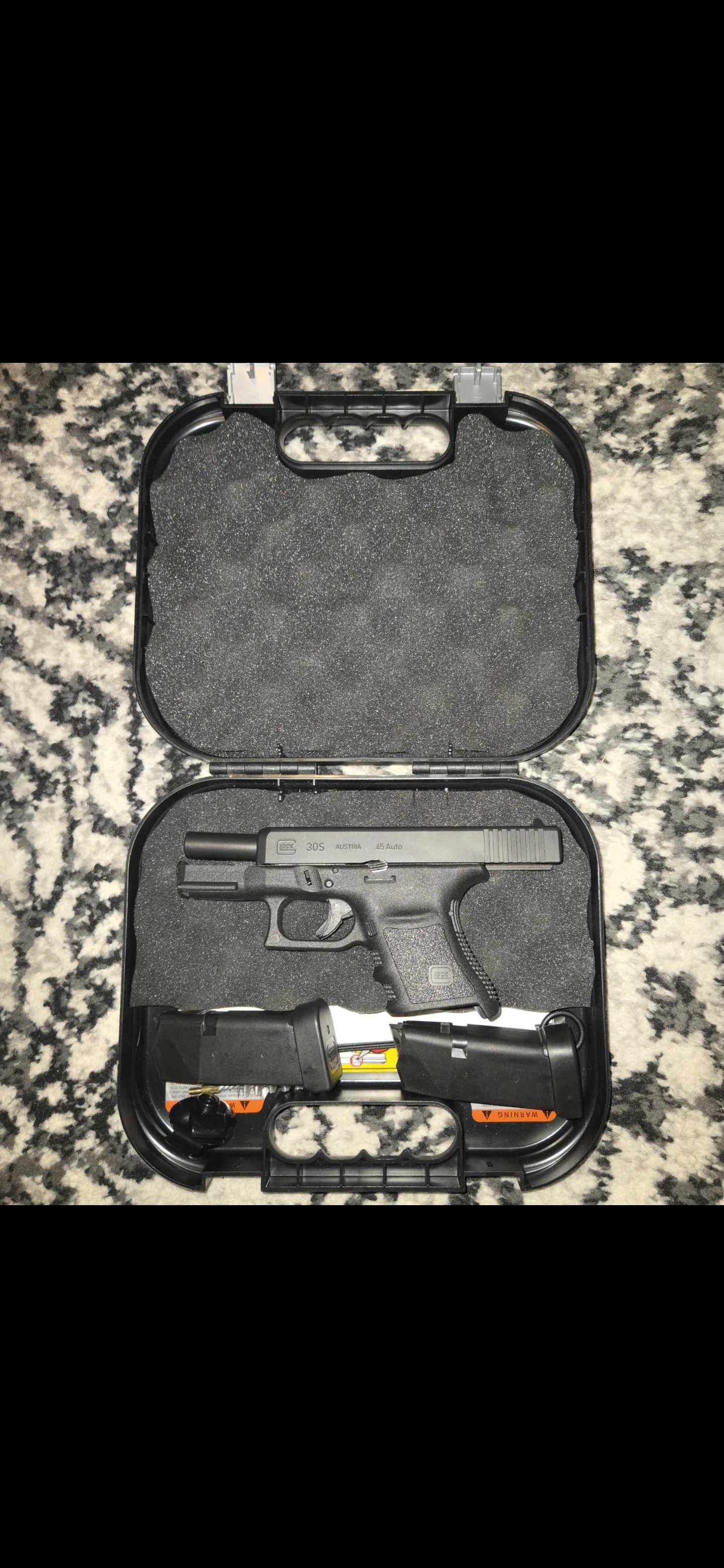 Glock 30s gen 3 with only about 150 rounds shot through it. Comes with 250 rounds magtech shooting box FMJ 230 grain 50 rounds white box Winchester FMJ 185 grain 25 rounds federal hollow point 230 grain 122 rounds misc FMJ 447 total rounds Holster included as well. First $600 takes it. Comes with metal ammo can Prefer text, thanks