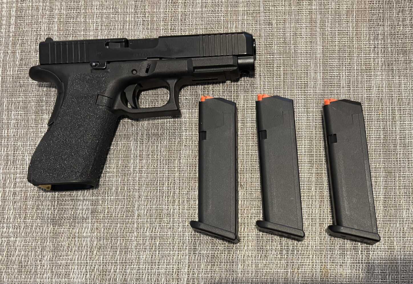 Glock 47, 9mm, Gen 5 with 3 magazines and original case. Upgrades include Johnny Glocks Combat Trigger, brass grip plug, tungsten guide rod, Talon grip (removable), and CH Precision optic plate for RMR/Holosun 507 footprint. Also included are the OEM internal parts.