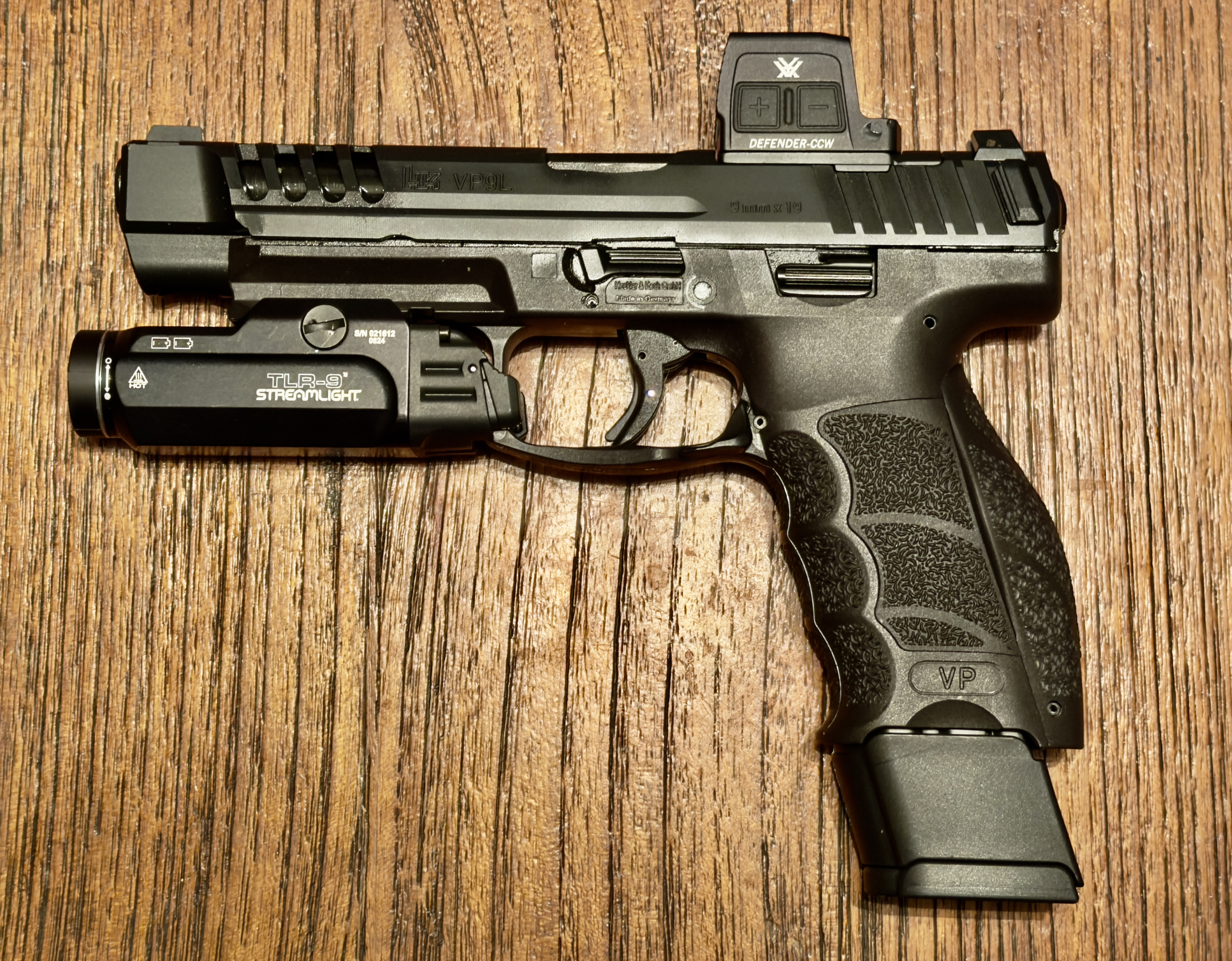 Excellent condition HK VP9L setup. Lightly used. Clean. well maintained. and ready to go. INCLUDED. HK VP9L (orig. box) Extra VP9 slide included w/ night sights Vortex Defender CCW enclosed optic (w/ orig. box) Streamlight TLR9 weapon light (w/ orig. box) Premium leather holster (VP9 slide&no lightIWB) Custom IWB kydex holster (L slide&light). PRICE. $1200. NOTES. No trades Selling as a complete package (no parting out) Serious inquiries only Text preferred. Located in Anchorage. REQUIREMENTS. 21 Valid Alaska ID Meet in a public location Bill of sale required