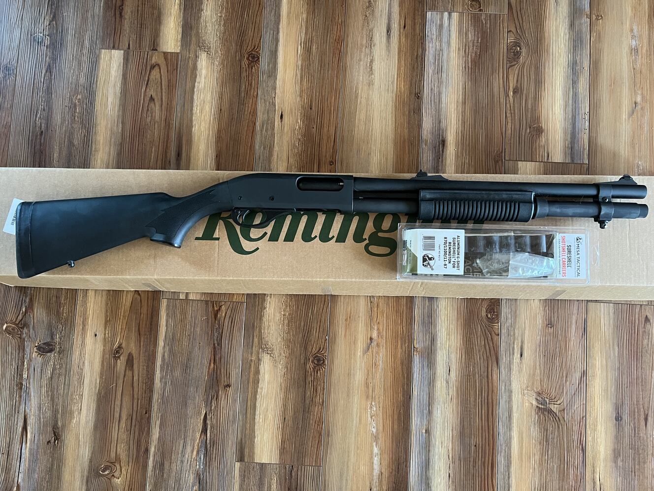 Remington 870 Police Magnum Pump Shotgun New in box. 12 gauge, 7 round capacity, 18.5" barrel, rifle sights, improved cylinder choke, synthetic stock. Includes Original box, manual and Mesa Tactical Sureshell ammo carrier. Buyer must be able to legally purchase firearm, have AK Drivers License and sign bill of sale. Text only. Cash only, no trades.