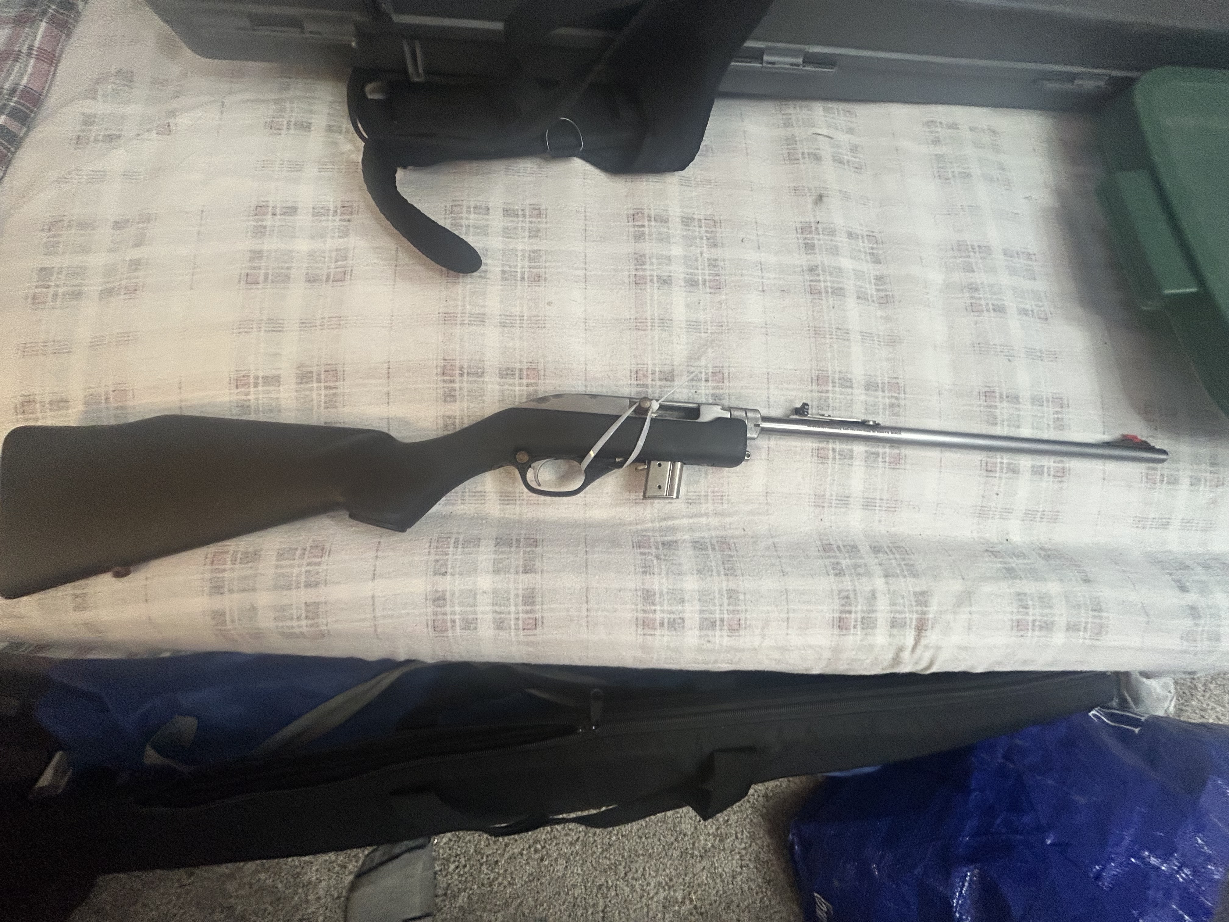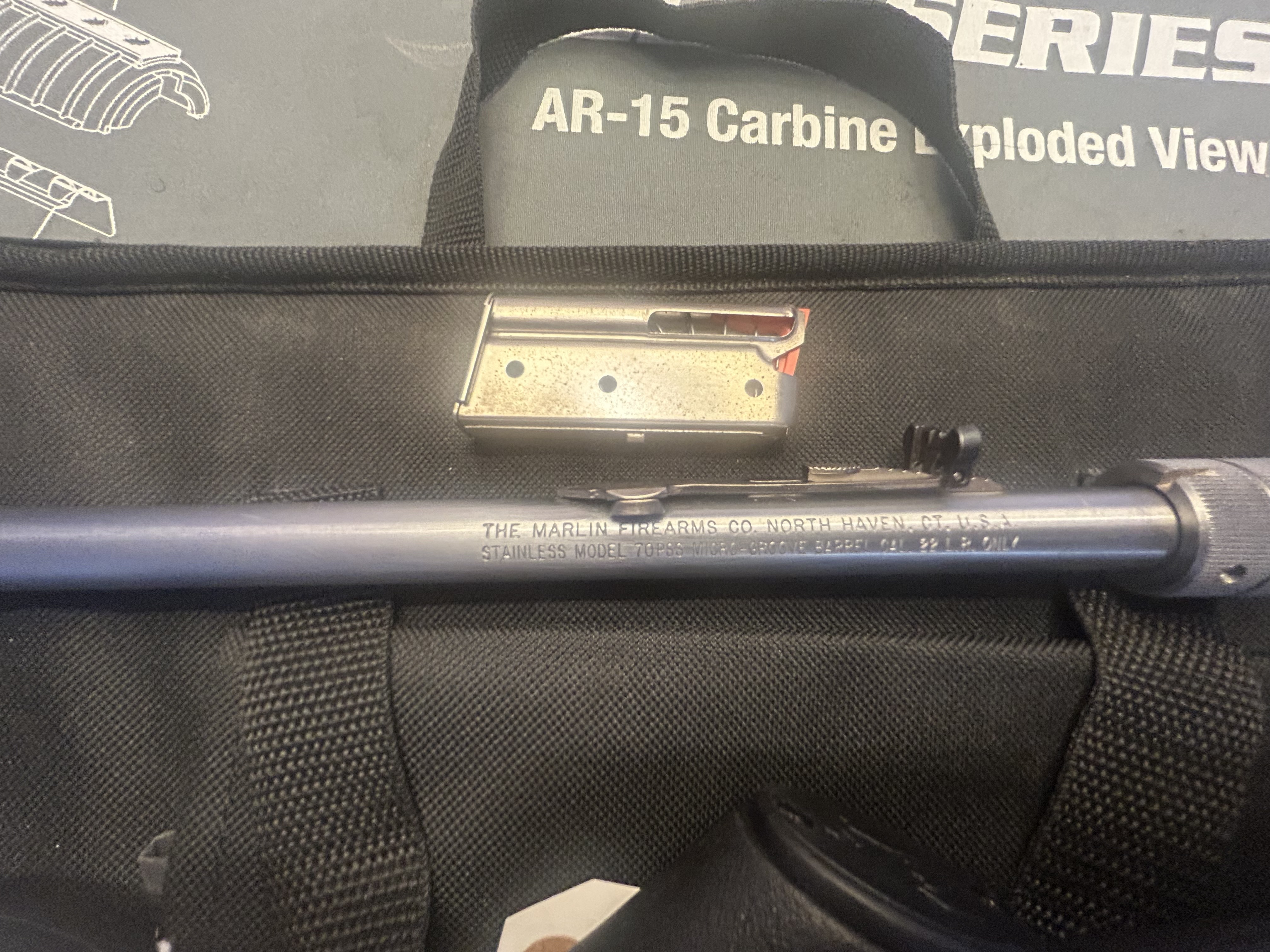 A very nice used Marlin .22 papoose take down .22. Has some wear marks. Comes with original favtory soft case. 2 magazines. It breaks down into the small back pack. Real sweet. Stainless finish.be great for summer back packing. Asking $325.00 cash no trades private transaction.