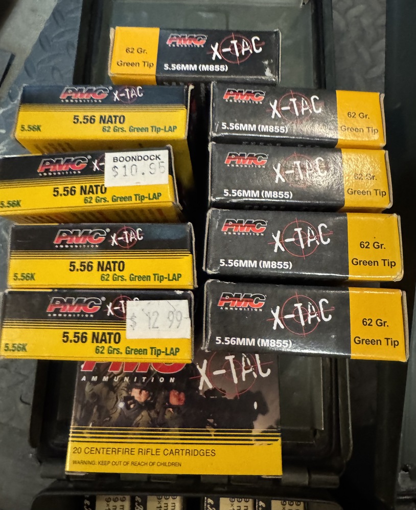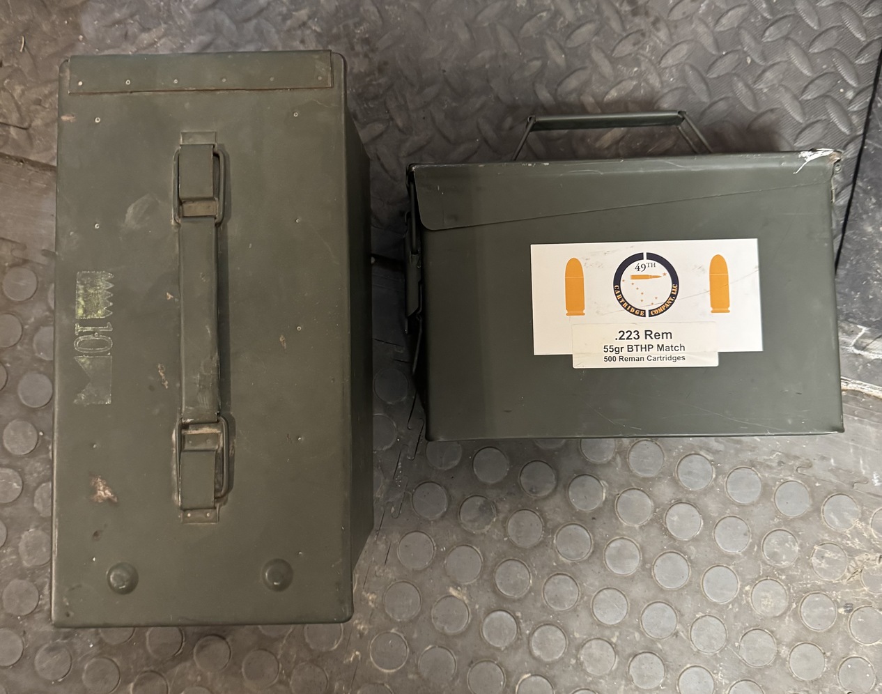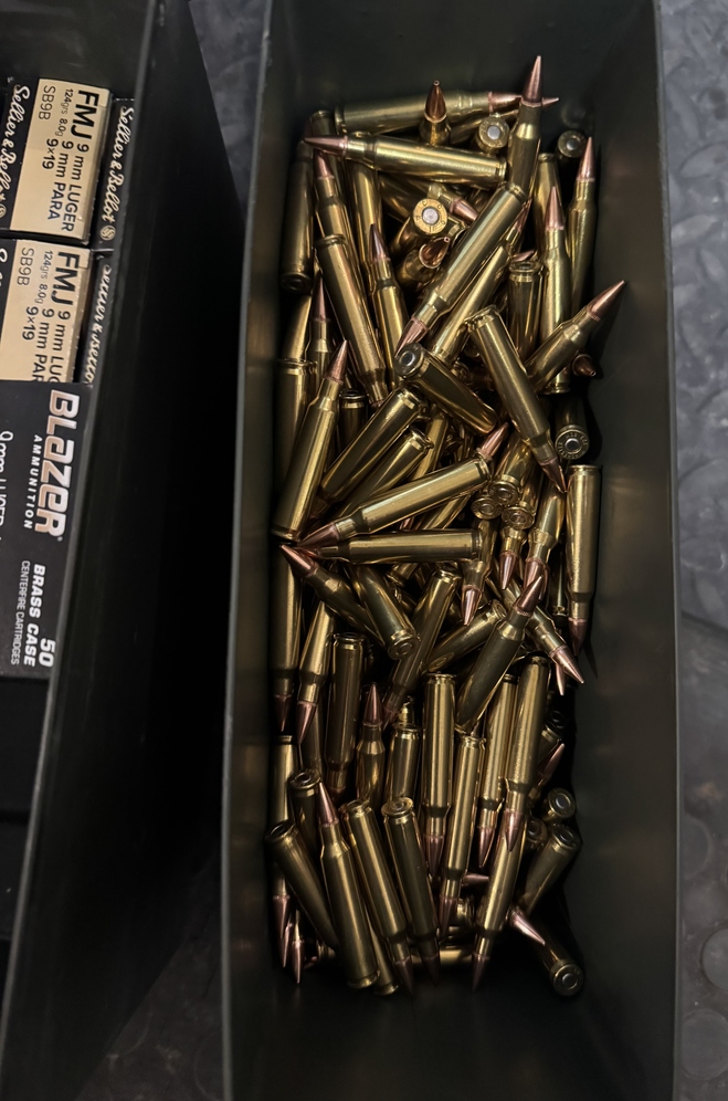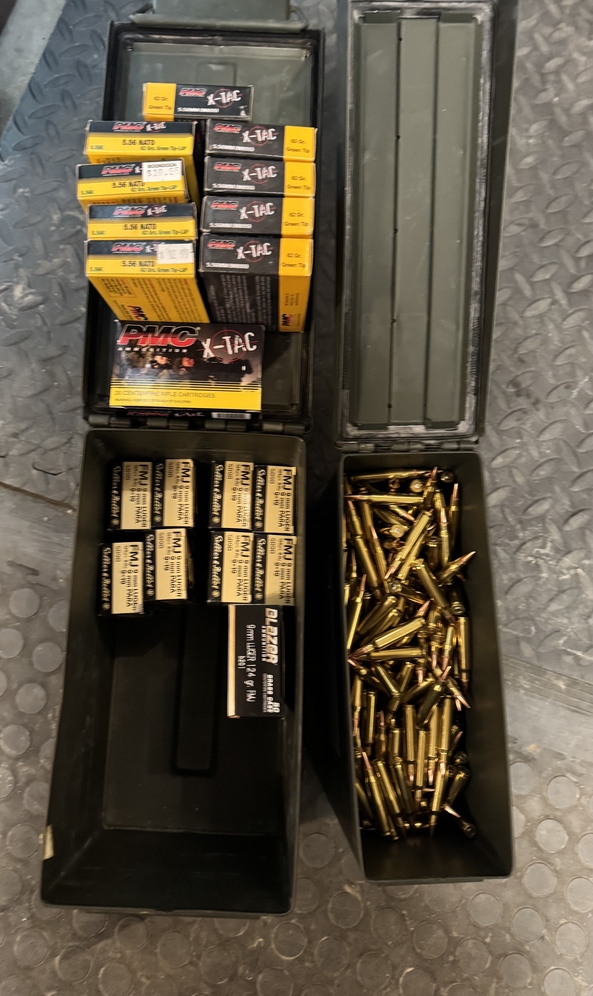 9mm and 223/5.56 ammo. 400 rds of 9mm plus 200 rounds of 5.56 XTAC 62g green tip plus 500 rds 223 55h bthp match reman. 1,100 rounds total includes the 2 ammo cans. Trades possible for a Glock Sig or m&p 9mm Sold as a package deal only. Will not sell separately