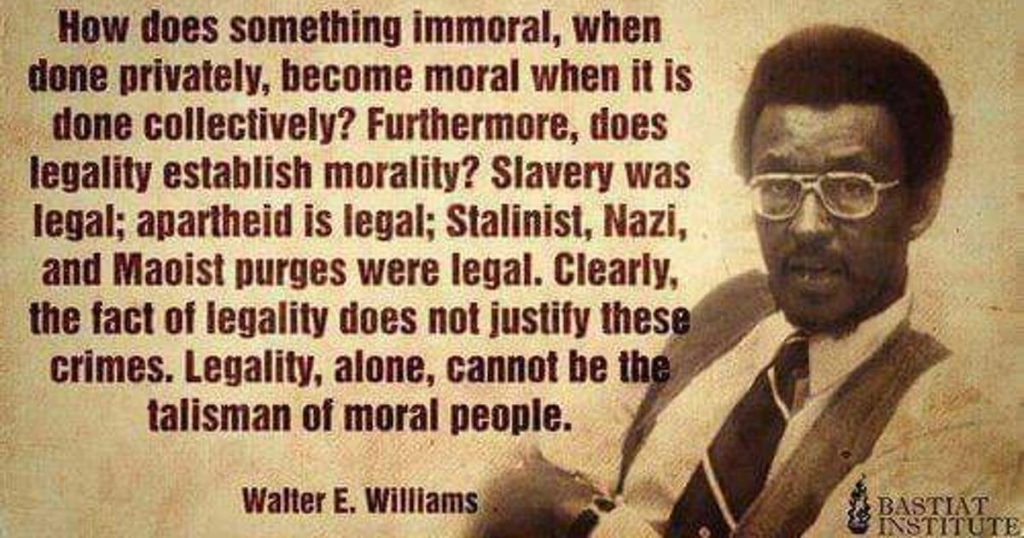It's morally unacceptable to use the coercive powers of government to force an individual to bear the responsibility of supporting others. That's failed, collectivist ideology, the scourges of which our forefathers sacrificed their lives to protect us from during two World Wars. Collectivism, in all its forms, whether it's communism, fascism, socialism, globalism, or whatever type of "ism" collectivist ideologies might be lurking behind, amounts to a form of involuntary servitude--a form of enslavement for every individual living under such a system.